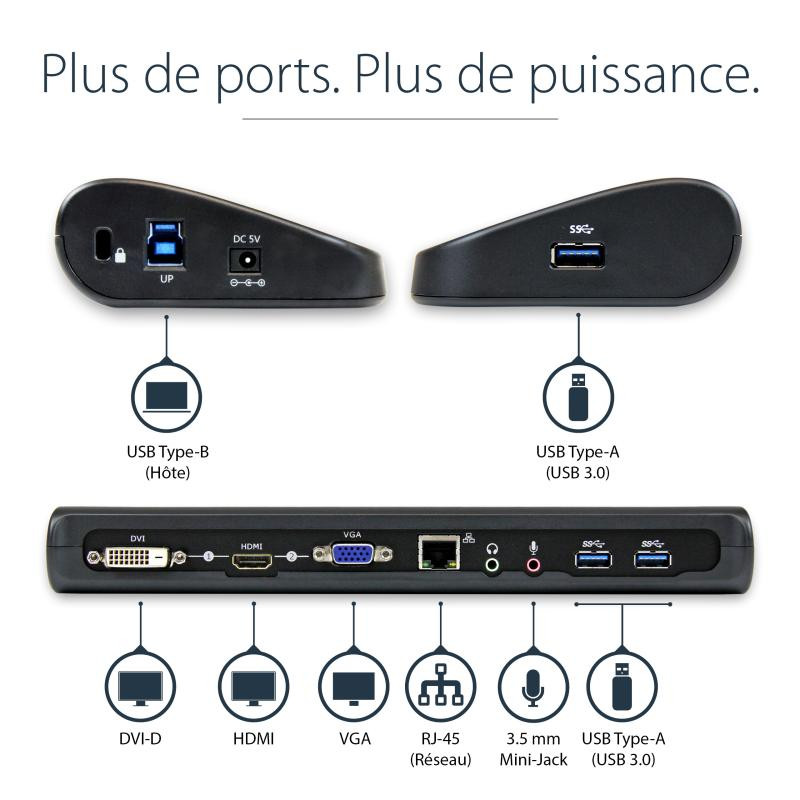 | Jeu de composants | DisplayLink - DL-3900, Genesys Logic - GL3520, Realtek - RTL8211E |