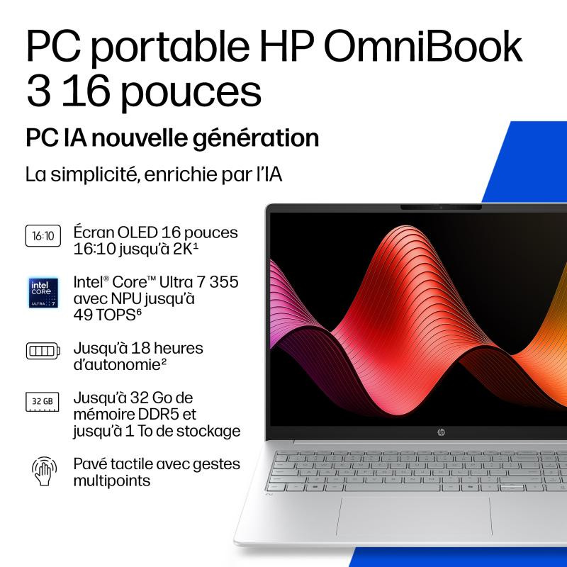 Les touches du clavier des PC IA nouvelle génération HP OmniBook 3 sont conçues avec au moins 85 % de plastique recyclé[2].