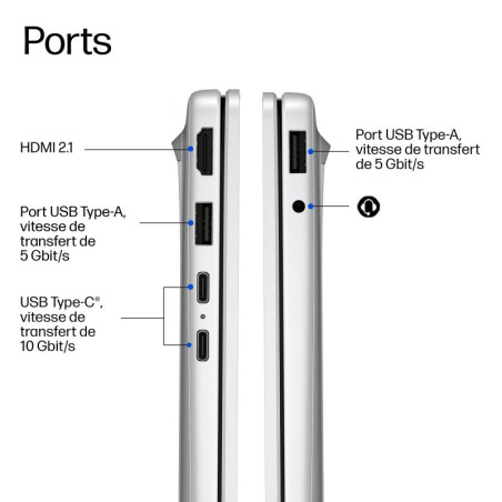 Alimentez votre périphérique ou branchez un écran externe sur un port USB-C® unique avec une vitesse de transfert de 10 Gbit/s. De plus, il est réversible et simple à connecter.[14]