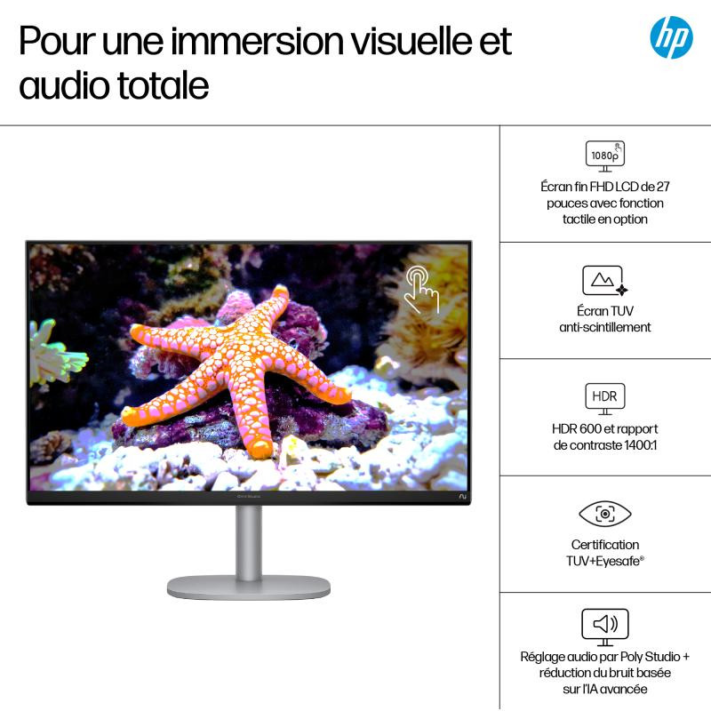 | Logiciels pré-installés | Copilot dans Windows avec touche Copilot ; Caméra Poly Pro, Version d'essai de 1 mois pour les nouveaux clients de Microsoft 365, 30 jours d’essai McAfee Online Protection; Offre d’essai gratuite Adobe de 1 mois; Essai PC Game Pass de 3 mois |