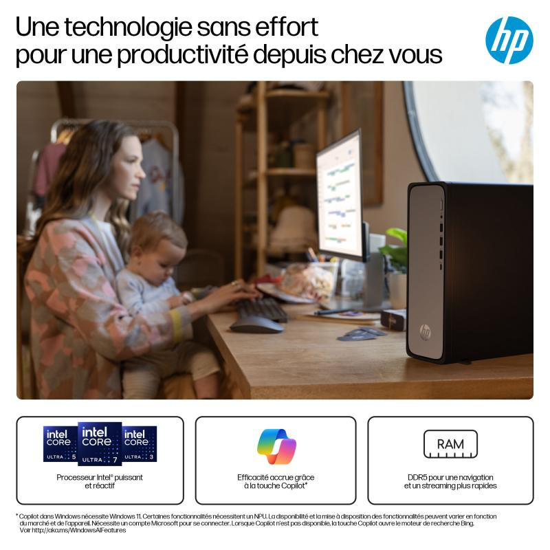 Grâce à son design fin, le PC fixe ultra-fin HP OmniDesk se fond dans tous les intérieurs tout en libérant de l’espace.