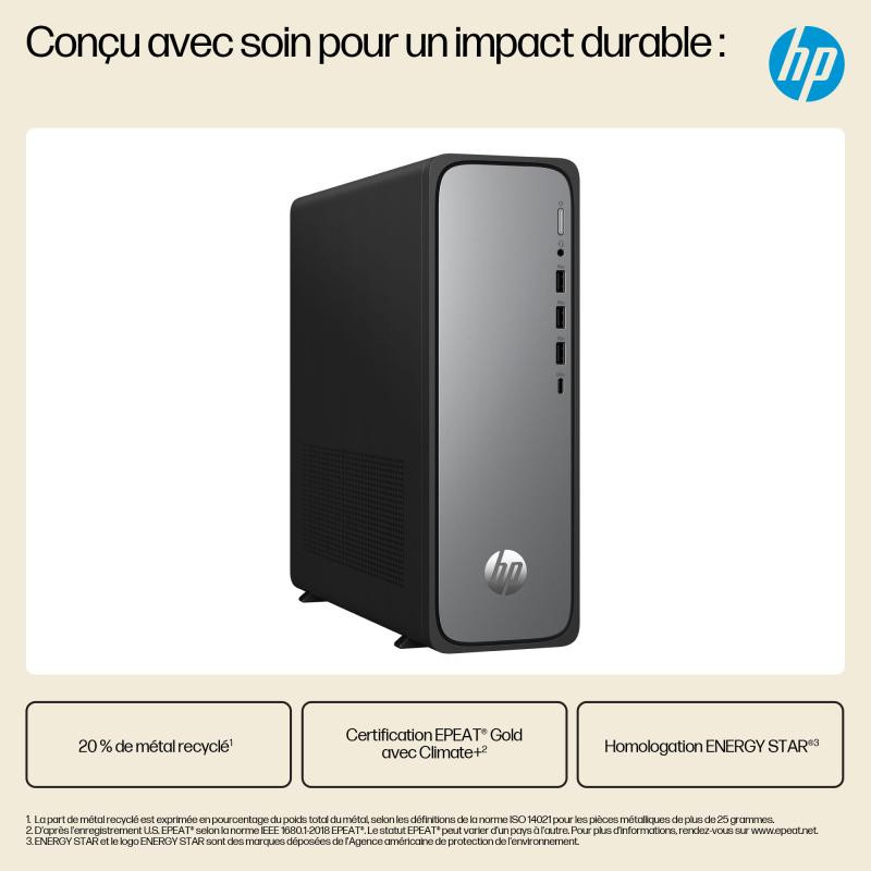 Le PC fixe ultra-fin HP OmniDesk est conçu à partir de métaux recyclés et de plastiques recyclés post-consommation[4].