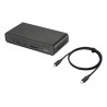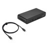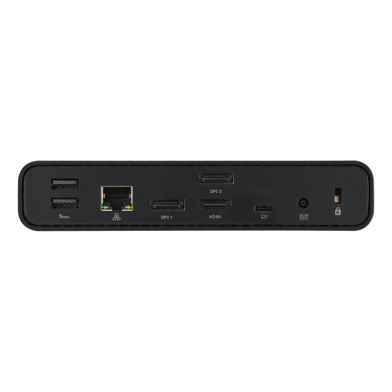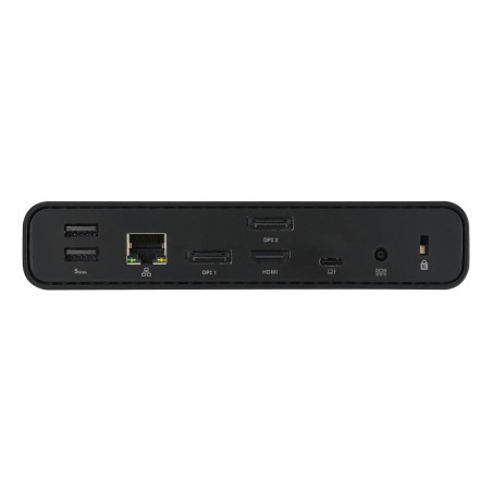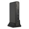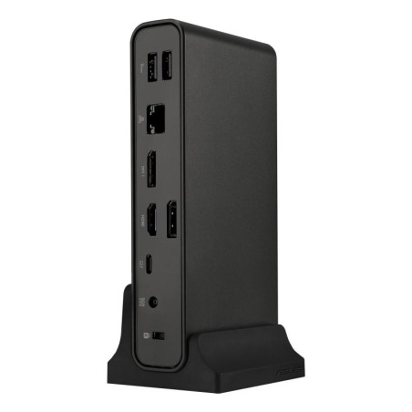 La Station d’accueil DC301 Duo dispose d’une multitude de ports d’E/S : trois écrans externes peuvent être connectés via HDMI,®USB-C® et 2 ports DisplayPort™, deux ports USB 3.2 Gen 1 Type-A prennent en charge un clavier et une souris, et il y a un port USB-C® , un port USB Type-A, un port réseau RJ45, une prise audio pour écouteurs, et un lecteur de carte SD pour les transferts de données. Cela fait un total de 12 fonctions.
