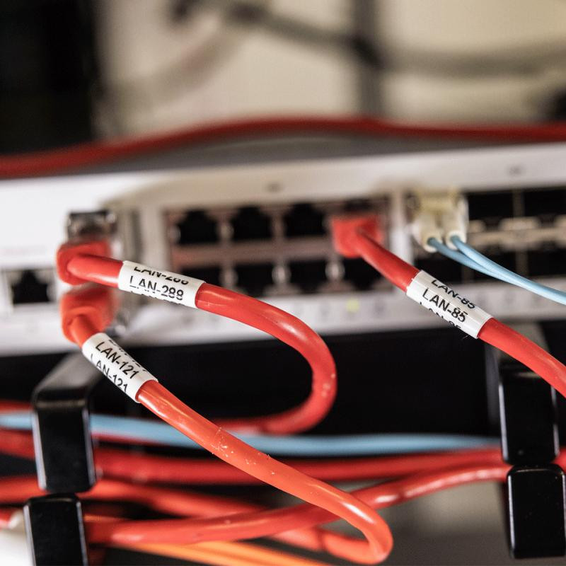 Grâce à l'outil Pro Label Tool ou au logiciel P-touch Editor de Brother, profitez du chargement automatique de modèles d'étiquettes prêts à imprimer pour les câbles, les panneaux de brassage, les plaques frontales, les disjoncteurs différentiels, les étiquettes de test/inspection/avertissement et l'identification des équipements réseau à partir du serveur cloud de Brother. Vous êtes ainsi assuré de toujours disposer des dernières réglementations et normes en matière de câblage.