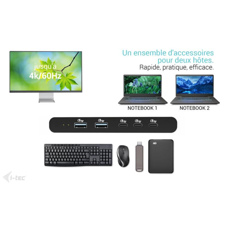 - Une station d’accueil pour deux hôtes : commutation instantanée entre PC1 et PC2