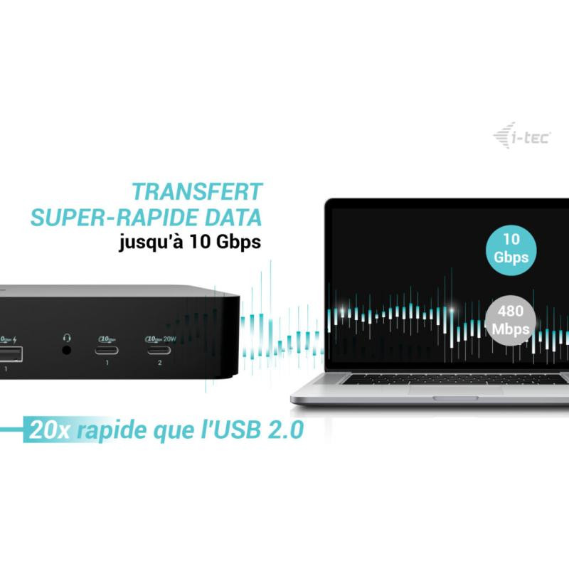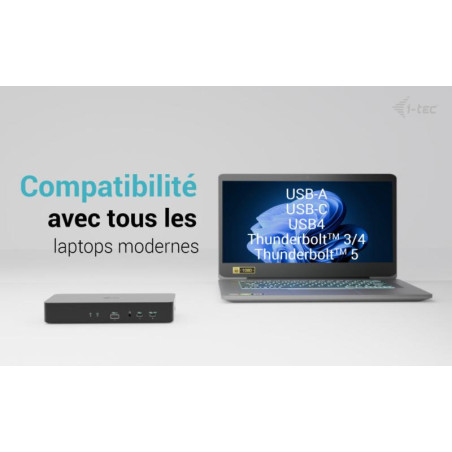 Une station d’accueil puissante pour le bureau, compatible avec les ports USB Gen 2 ultra-rapides et la charge rapide. La station d’accueil prend en charge la sortie vers deux moniteurs externes en haute résolution jusqu’à 4K. Elle peut être utilisée avec pratiquement tous les ordinateurs portables, car elle prend en charge la connexion à tous les ports courants : USB-A, USB-C, USB4 et Thunderbolt 3/4/5, tout en prenant en charge tous les systèmes d’exploitation courants actuels.