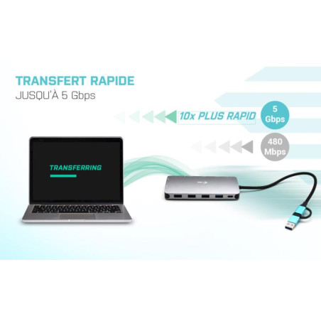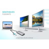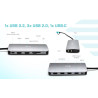 Les 5 ports USB, la connexion fiable et rapide au réseau de l’entreprise grâce au port LAN intégré et le support VGA natif font de cette station d’accueil le compagnon idéal des professionnels qui sont souvent en déplacement et qui ont besoin de se connecter même à des moniteurs et projecteurs plus anciens. Bien entendu, il permet de charger votre ordinateur portable ou votre tablette (jusqu’à 100 W).