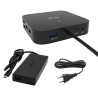 La station d’accueil peut être utilisée sans qu’un adaptateur d’alimentation soit connecté. Dans ce cas, les sorties vidéo, le LAN (RJ-45), l’audio/micro et les deux ports USB 2.0 seront toujours fonctionnels. Cependant, les ports USB 3.0 et le port de données USB-C peuvent ne pas fonctionner lors de la connexion de périphériques ayant des besoins en énergie plus élevés (par exemple, les SSD, notamment les disques NVMe). Dans ce cas, la station d’accueil peut s’arrêter. Nous recommandons d’utiliser la station d’accueil avec un adaptateur d’alimentation connecté pour garantir l’utilisation de tous les ports et l’obtention de vitesses de transfert de données maximales. (L’adaptateur est inclus dans le paquet).