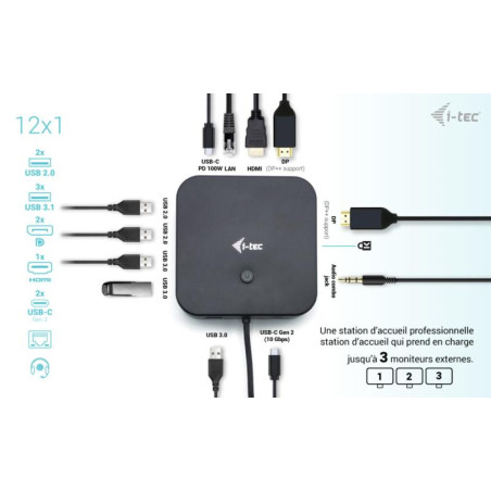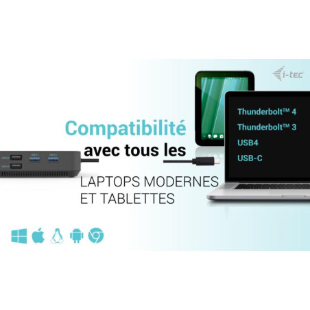 Un dock de bureau USB-C haute performance qui prend en charge jusqu’à 3x moniteurs externes 4K. Le dock est compatible avec tout ordinateur portable équipé d’un port USB-C, USB4 ou Thunderbolt 3/4. Bien entendu, il prend en charge la charge de votre ordinateur portable ou de votre tablette jusqu’à 100 W.