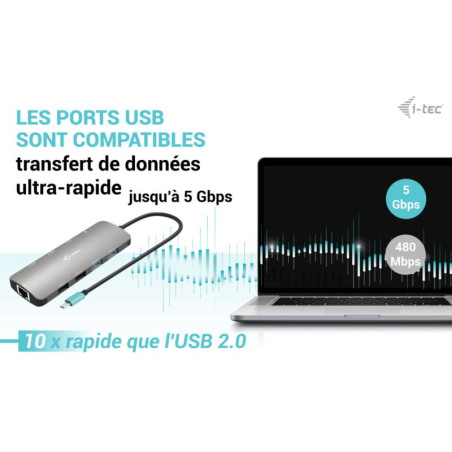 Petite station d’accueil USB-C en métal capable de prendre en charge jusqu’à deux moniteurs externes simultanément*. Connectez simplement votre ordinateur portable ou votre tablette (pas besoin d’installer de pilotes) et profitez des avantages d’un transfert de données USB rapide et d’une connexion à Internet via un port LAN. Et bien sûr, la station d’accueil peut également alimenter votre ordinateur portable jusqu’à 100 W, ce qui signifie que vous pourrez charger tous les ordinateurs portables et tablettes qui prennent en charge la charge via USB-C (USB-C Power Delivery).