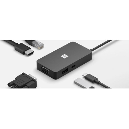 Microsoft 1E4-00002. Couleur du produit: Noir, Interfaces Hub: HDMI, RJ-45, USB 3.2 Gen 1 (3.1 Gen 1) Type-C, USB 3.2 Gen 2 (3.1 Gen 2) Type-A, VGA. Poids: 99,2 g