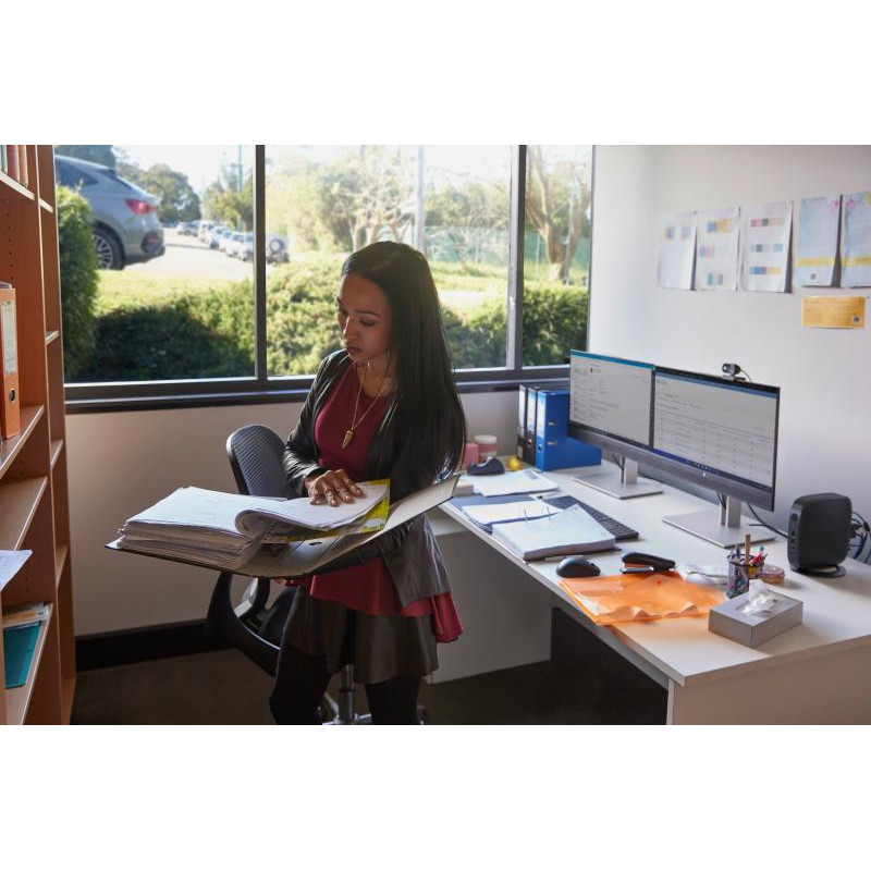 Travaillez confortablement toute la journée, grâce à un réglage quadri-directionnel optimisé par le Guide de confort ergonomique disponible via HP Display Center[3]. Préservez votre confort visuel avec un écran équipé de la technologie sans scintillement, d’un taux de rafraîchissement de 75 Hz[1] et de HP Eye Ease, un filtre faible lumière bleue intégré et toujours activé.