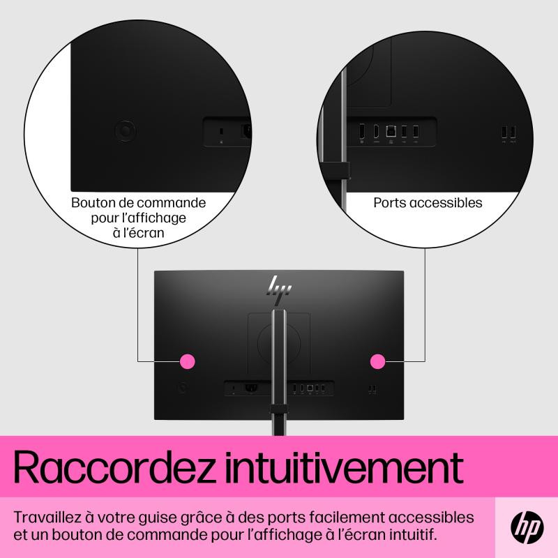 Une connectivité à bon port. Avec ses connexions HDMI, DisplayPort™ et USB-B ainsi que ses quatre ports USB-A 3.2, connectez de nombreux appareils, comme votre micro-casque et votre caméra. [7]