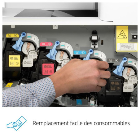 | Cartouches de remplacement | W2010A Cartouche de toner noir HP 659A LaserJet (16 000 pages); W2011A Cartouche de toner cyan HP 659A LaserJet (13 000 pages); W2012A Cartouche de toner jaune HP 659A LaserJet (13 000 pages); W2013A Cartouche de toner magenta HP 659A LaserJet (13 000 pages); W2010X Cartouche de toner noir HP 659X LaserJet (34 000 pages); W2011X Cartouche de toner cyan HP 659X LaserJet (29 000 pages); W2012X Cartouche de toner jaune HP 659X LaserJet (29 000 pages); W2013X Cartouche de toner magenta HP 659X LaserJet (29 000 pages); W2004A Tambour d’imagerie LaserJet authentique HP 660A (65 000 pages, universel pour les 4 couleurs) |