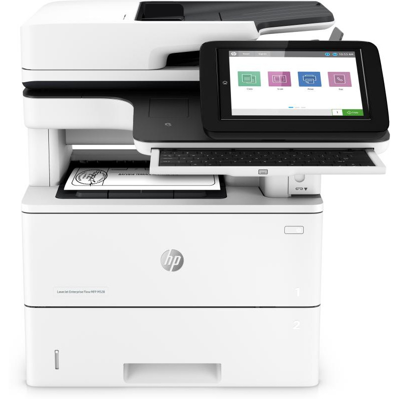 | Contenu de la boîte | HP LaserJet Enterprise Flow M528z MFP; HP Original LaserJet Introductory Toner Cartridge (7,500 pages); Regulatory flyer (CD replacement); Unpack flyer; Installation guide; Power cord; Warranty cards; Support flyers/phone number list; Control panel overlay label sets (flow); Fax Cable |
