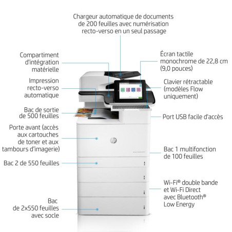 | Technologies d'impression mobile | Mopria Print Service, HP ePrint, Apple AirPrint, Google Cloud Print |