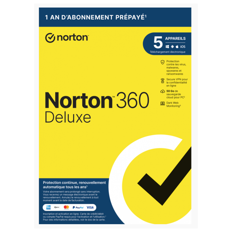 Norton Norton 360 Deluxe - 5 Appareils - Secure VPN - Sauvegarde clou