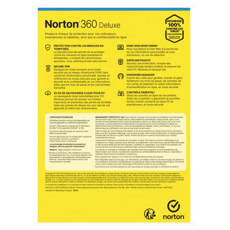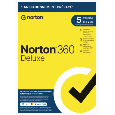 Norton Norton 360 Deluxe - 5 Appareils - Secure VPN - Sauvegarde cloud