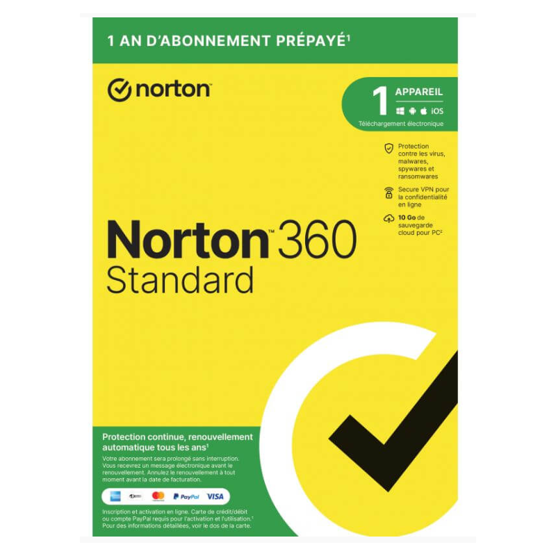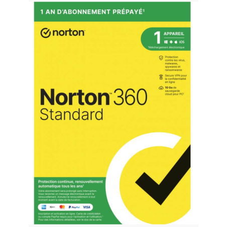Norton Norton 360 Standard -1 Appareil - Secure VPN - Password Manage