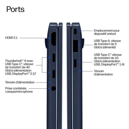 Travaillez n’importe où sans aucun compromis sur les performances avec Windows 11 et les technologies de collaboration, de sécurité et de connectivité HP. Résumez et réécrivez du contenu, obtenez des recommandations de contenu pertinentes et bénéficiez d’une parfaite organisation avec Microsoft Copilot.[1]