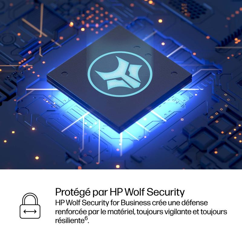 HP Wolf Security for Business crée une défense renforcée par le matériel, toujours vigilante et toujours résiliente. Du BIOS au navigateur, en passant par le système d’exploitation, ces solutions en constante évolution aident à protéger votre ordinateur des menaces actuelles.[12]