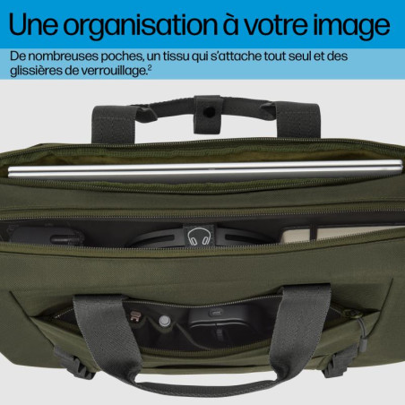 Saisissez chaque jour avec un sac modulaire qui vous permet de rester organisé pendant vos déplacements. Il offre une capacité totale de 22 litres et de multiples poches entre le sac, la pochette et la pochette. Les deux poches externes offrent un passage pour les câbles. Il y a même une poche pour votre bouteille. Le tissu auto-agrippant maintient vos affaires en place, tandis que les fermetures à glissière verrouillables les protègent [2].