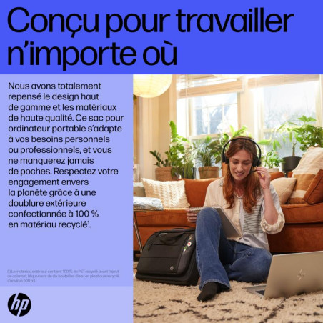 Protégez vos appareils sans oublier la planète. Le matériau extérieur de la sacoche pour ordinateur portable est composé à 100 % de plastique recyclé, soit l’équivalent de dix bouteilles en plastique[1]. Cette sacoche pour ordinateur portable résistante à l'eau est fabriquée à partir d’un matériau durable, hygiénique et facile à nettoyer[2].
